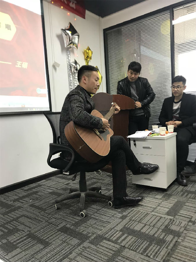 下午在熱烈的氣氛中,我們?nèi)w員工展開(kāi)了豐富多彩的文藝演出,文藝演出中穿插舉行了“聽(tīng)曲識(shí)歌”和“驛站傳書(shū)”的游戲。全體員工積極參與,整個(gè)氣氛熱烈歡騰。文藝匯演中,看得出大家最喜歡的節(jié)目是歌唱表演,參與的同事有張杰,左超,王宗汝,等等,極大限度的體現(xiàn)了我公司員工多才多藝的一面。節(jié)目還有人事部小祝表演的“橡皮筋”魔術(shù)精彩萬(wàn)分。不同風(fēng)格,體現(xiàn)了我們不同的風(fēng)采,但有一點(diǎn)是共同的:為了公司美好的明天,我們?nèi)σ愿?,努力拼搏?
